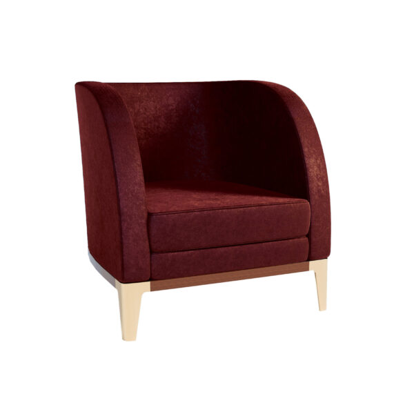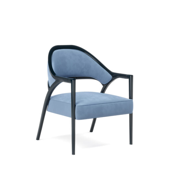 Um elegante cadeirão com uma diferente e contemporânea silhueta dão o toque final à decoração, encontrando o equilibro entre forma e funcionalidade em linhas intemporais. Riley pode ser personalizado através da escolha do tecido e dos acabamentos lacados ou em folha de madeira.